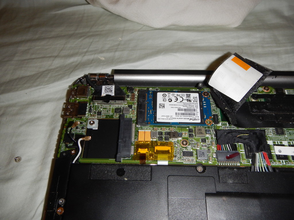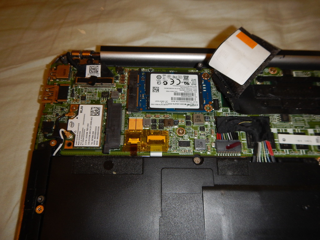 After that insert the new card, screw it in with the original screw (do not use the ones bundled with the card), and attach the antenna connectors.